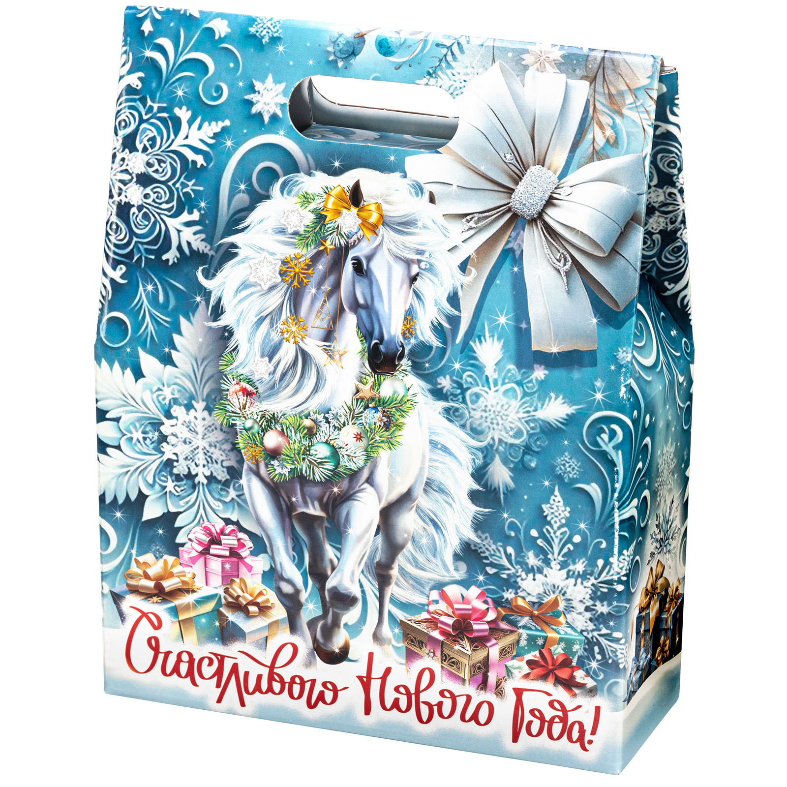 Новогодние сладкие подарки с изображением символа года - это нестареющая классика. Подарочный набор “Белоснежная” - это идеальное сочетание креативной подарочной упаковки и вкусного разнообразного конфетного состава. Подарок представляет собой небольшую картонную сумочку с изображением белой волшебной лошадки на фоне зимнего леса. Снизу красуется контрастное поздравление, а наверху есть удобная ручка. Внутри содержатся вкусные лакомства, с которыми каждое праздничное чаепитие приобретет еще более торжественное и веселое настроение. Подарочный набор - универсален. Его можно вручить как ребенку, так и взрослому.