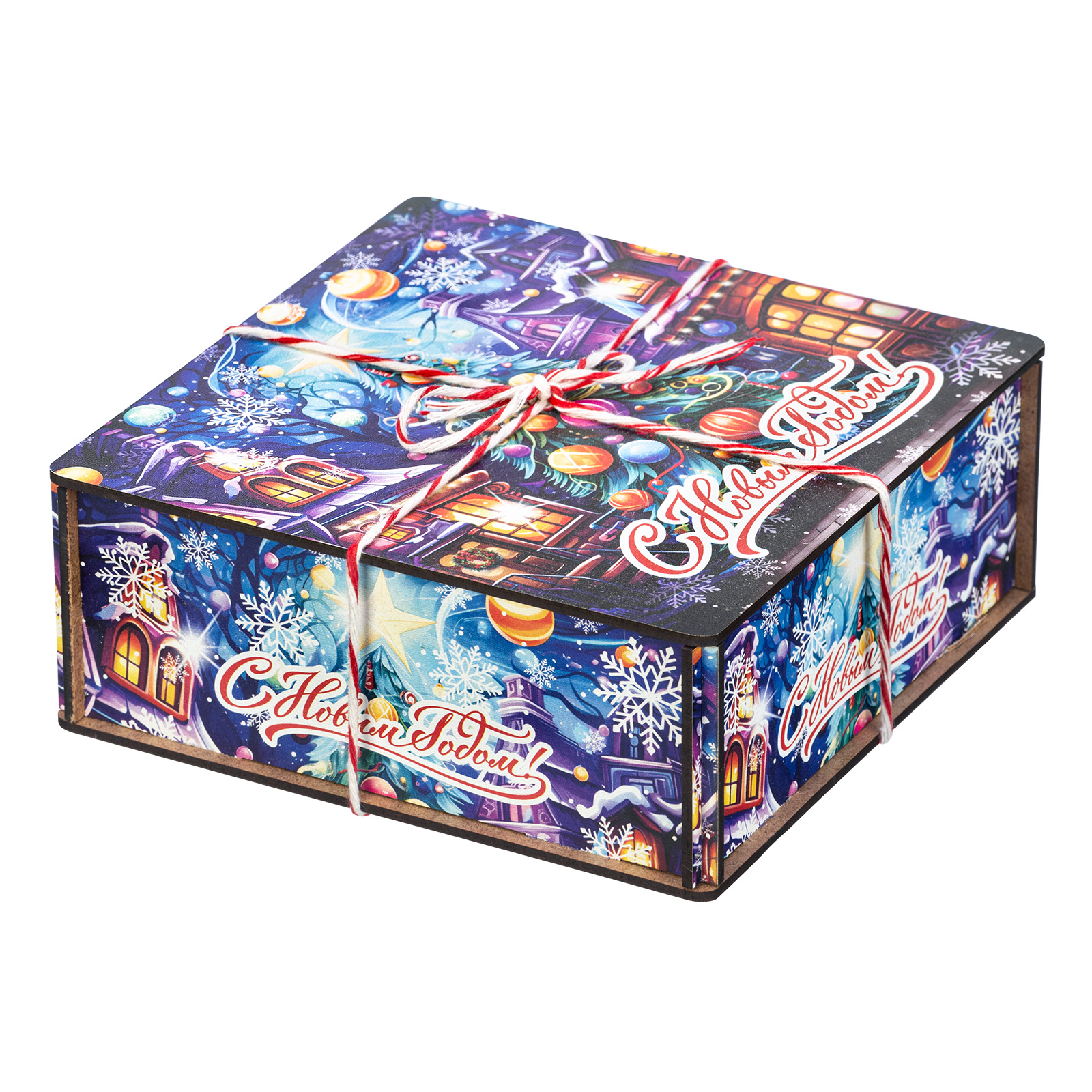 Интересный вариант новогоднего подарка – «Хрустальная сказка (Полезный состав)». Он представлен в разделе Дерево. Отлично подойдет на подарок в 2026 году с символом Лошадь. Внутри такого презента находится кондитерский набор весом 700 граммов.